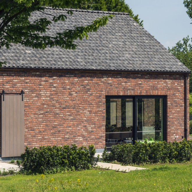 Dankzij de kleurnuances en het trommelproces is deze steen breed inzetbaar en bijzonder geschikt voor de traditionele Kempische bouwstijl.
