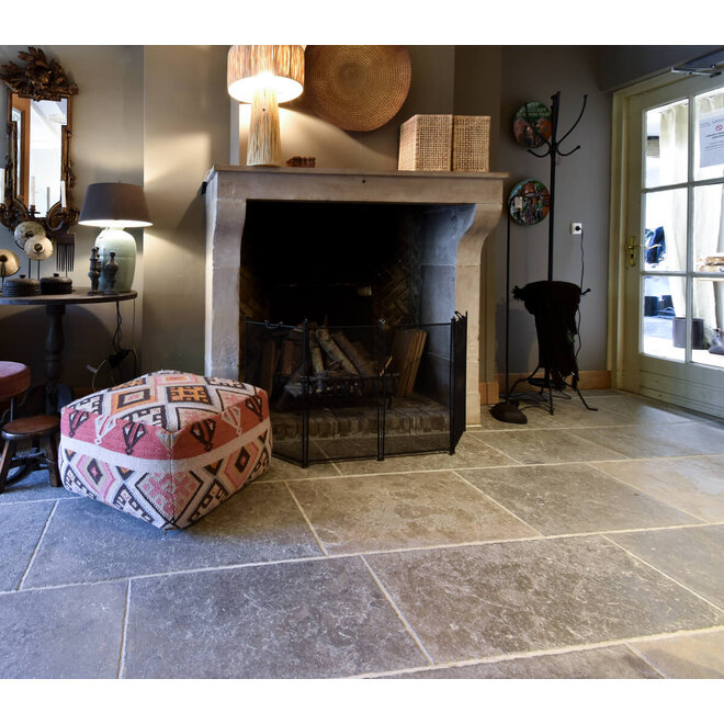 Wanneer je een huis koopt, bouwt of verbouwt sta je voor veel keuzes. De vloertegel is daar een van, maar wel een zéér bepalende. Daarom heeft de keuze voor een tegel de juiste aandacht nodig. Deze dallen worden in het atelier aan de zijkanten heel mooi met de hand licht verouderd. De stenen worden geleverd in de maten 40 en 50 cm breed, die in banen verband gelegd moeten worden. De lengte van de vloerstenen is wisselend. Deze verouderde dallen hebben een zeer mooie "Calcaire Gris" kleurschakering.