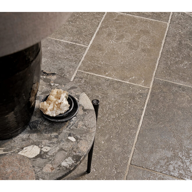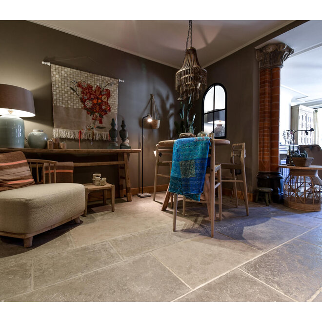 Dallen tegelvloer "Calcaire Gris" geborsteld 40/50 cm breed