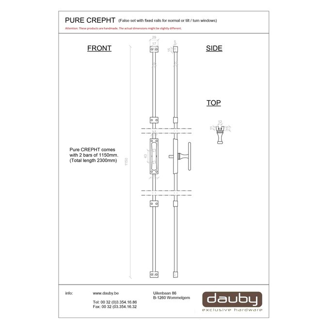 Deze raamklink is in het leven geroepen om ramen te bedienen zonder inwendig systeem (meestal naar buiten opendraaiende ramen). Door het brede assortiment binnen de Pure Line, kan uw woning volledige ingericht worden met het authentieke Dauby beslag. Dit zorgt voor een perfecte match met de Kempische Bouwstijl of het creëren van een luxe en sfeervolle beleving in uw eigen woning.