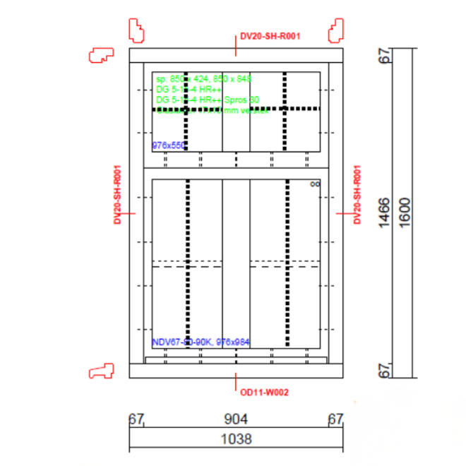 - Glas: Standaard HR++ (glasopbouw = 5-15-4) met U-waarde 1.1 W/m²K. Tripleglas mogelijk tegen meerprijs