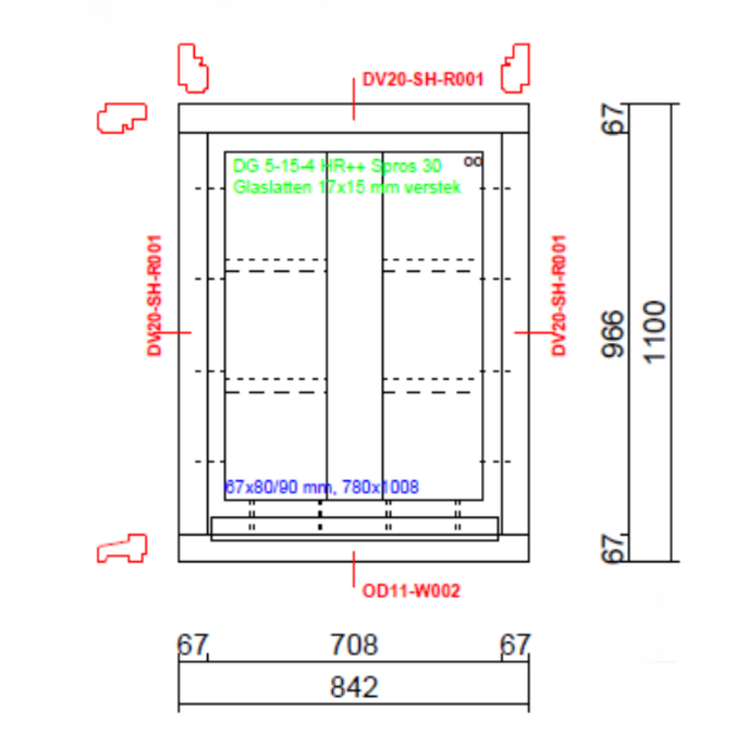 - Glas: Standaard HR++ (glasopbouw = 5-15-4) met U-waarde 1.1 W/m²K. Tripleglas mogelijk tegen meerprijs