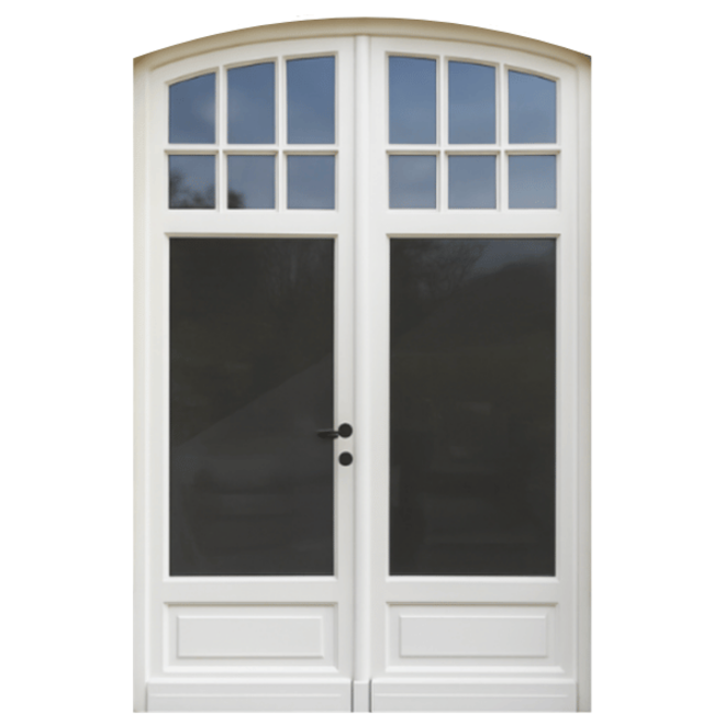 Hardhouten kozijn met dubbele deuren voorgegrond