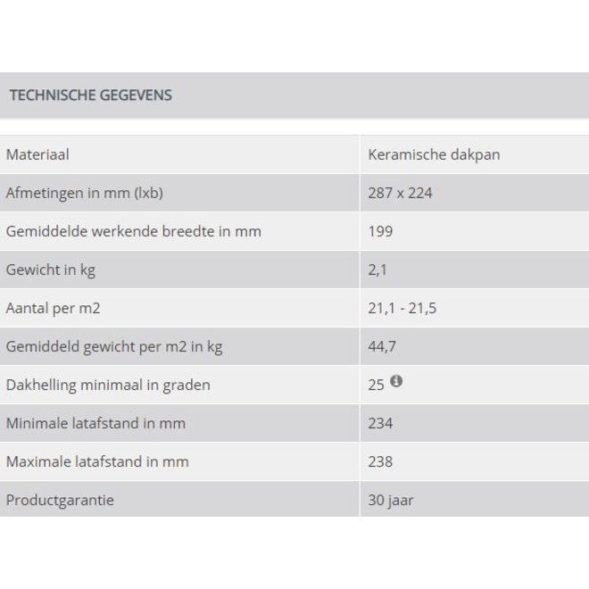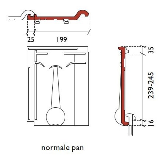 Deze keramische dakpan is in de basis verkrijgbaar in 2 kleurtinten. De 2 kleurtinten rood en grijs worden bepaald bij het productieproces. Door de pannen te bakken krijgen ze de rode tint. Door de oven vroegtijdig te smoren worden de pannen antraciet van kleur. De afwerking word naderhand aangebracht.