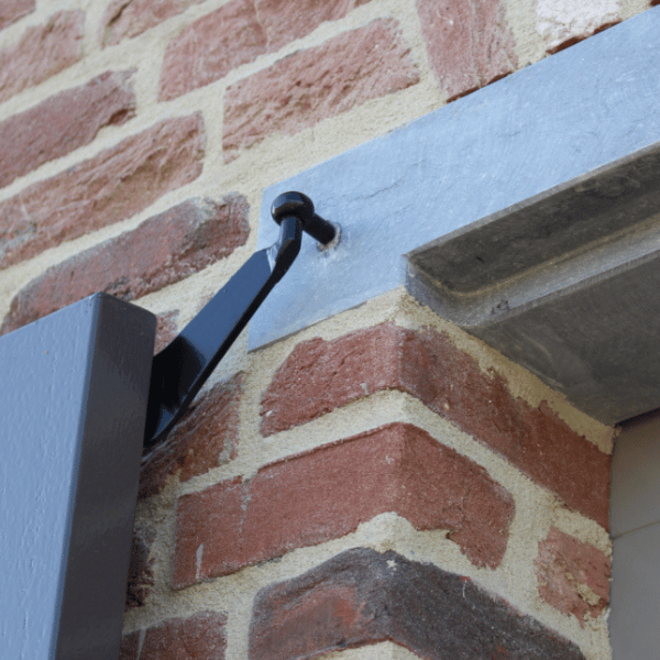 Luikscharnierset zwart metaal compleet voor 1 luik. Deze set is compleet samengesteld en is op basis van diverse praktijkervaringen tot een perfect product uitgewerkt. Door de unieke pen/bus verbinding is het scharnier veel subtieler dan menig ander scharnier en geeft deze een prachtige strakke uitstraling mee aan uw luiken.