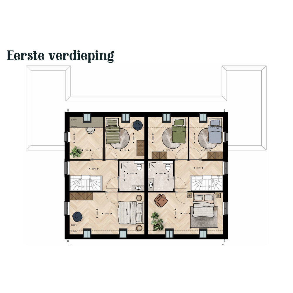 Onze modelwoningen zijn ontworpen met slim reken- en tekenwerk, waardoor het basisontwerp vastligt. Binnen deze heldere kaders zijn er wél volop mogelijkheden om uw woning een persoonlijke uitstraling te geven — van verschillende combinaties van gevelstenen en dakpannen tot het toevoegen van luiken, een erker of serre.
