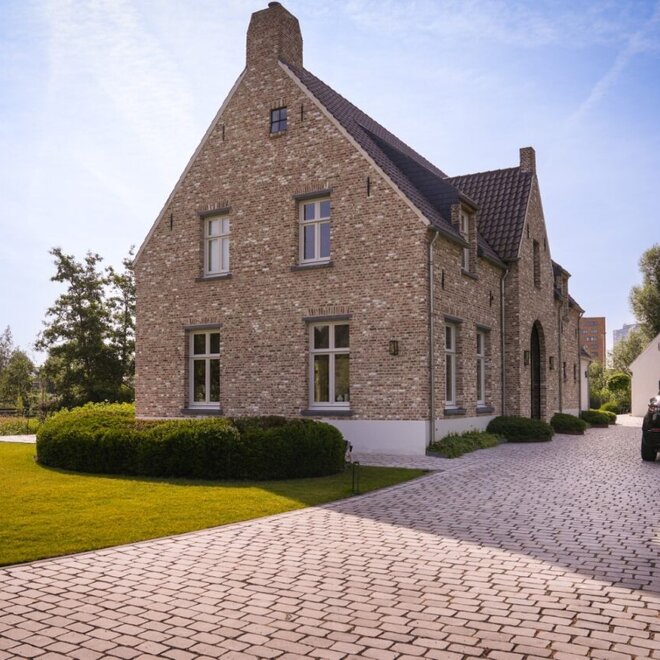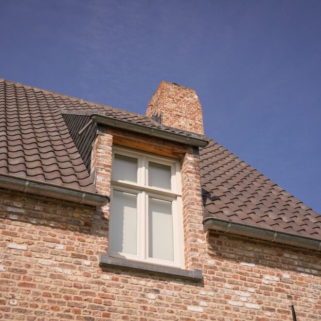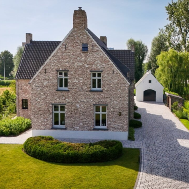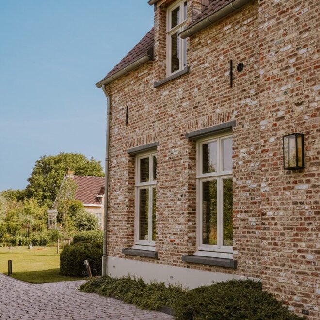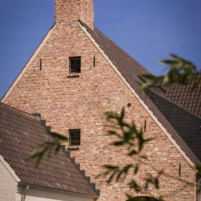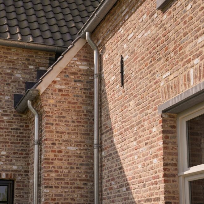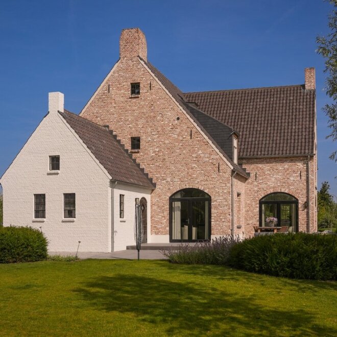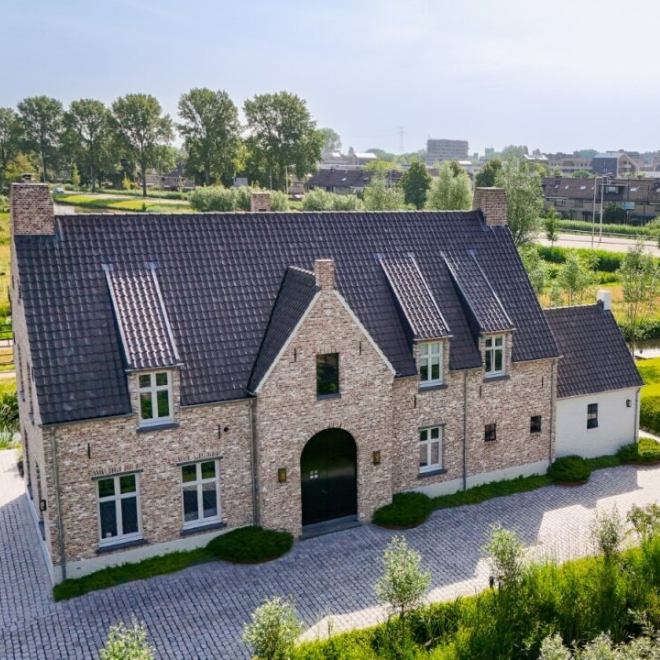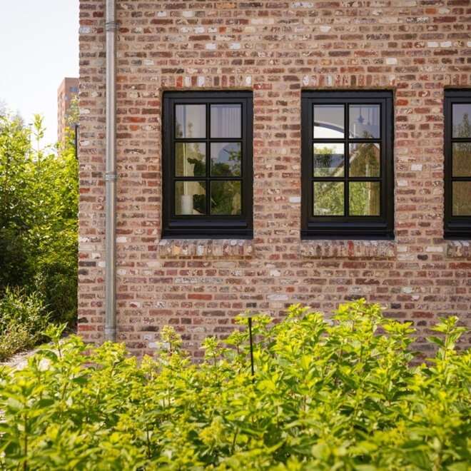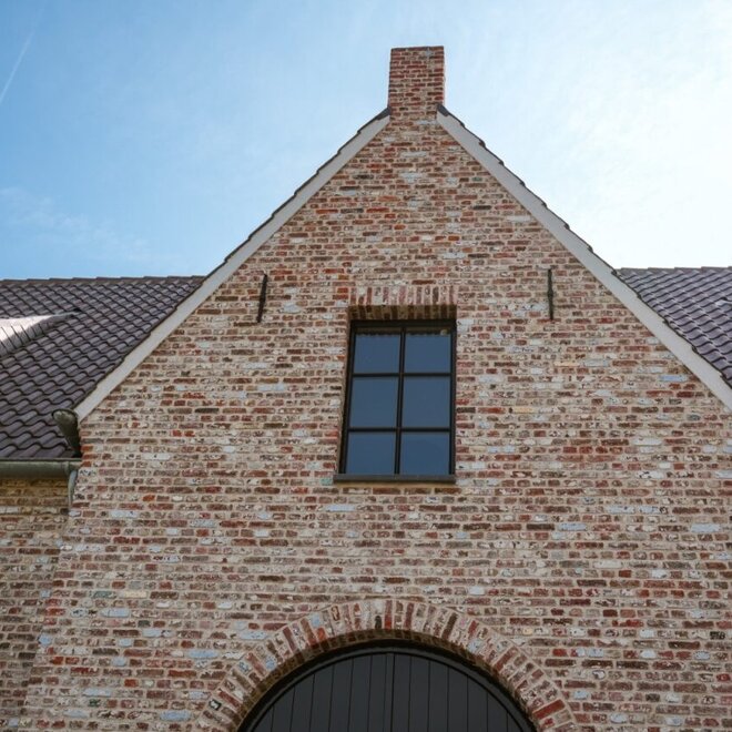 Een architectonisch kunstwerk, vinden wij! De verschillende aan en uitbouwen, tuitgevel en dakkapellen maken het tot een speels, en toch rustig ontwerp. Hoe er is gewerkt met de verschillende geveltinten en asymmetrische raamindeling benadrukt het vakmanschap. De staallook kozijnen en gemêleerde gevelstenen matchen goed met elkaar, vind je niet?