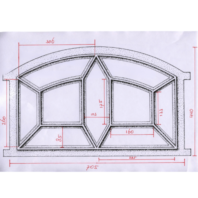 Gietijzeren stalraam / gevelraam enkel glas, vast model afmeting B70.5 x H44.5 cm