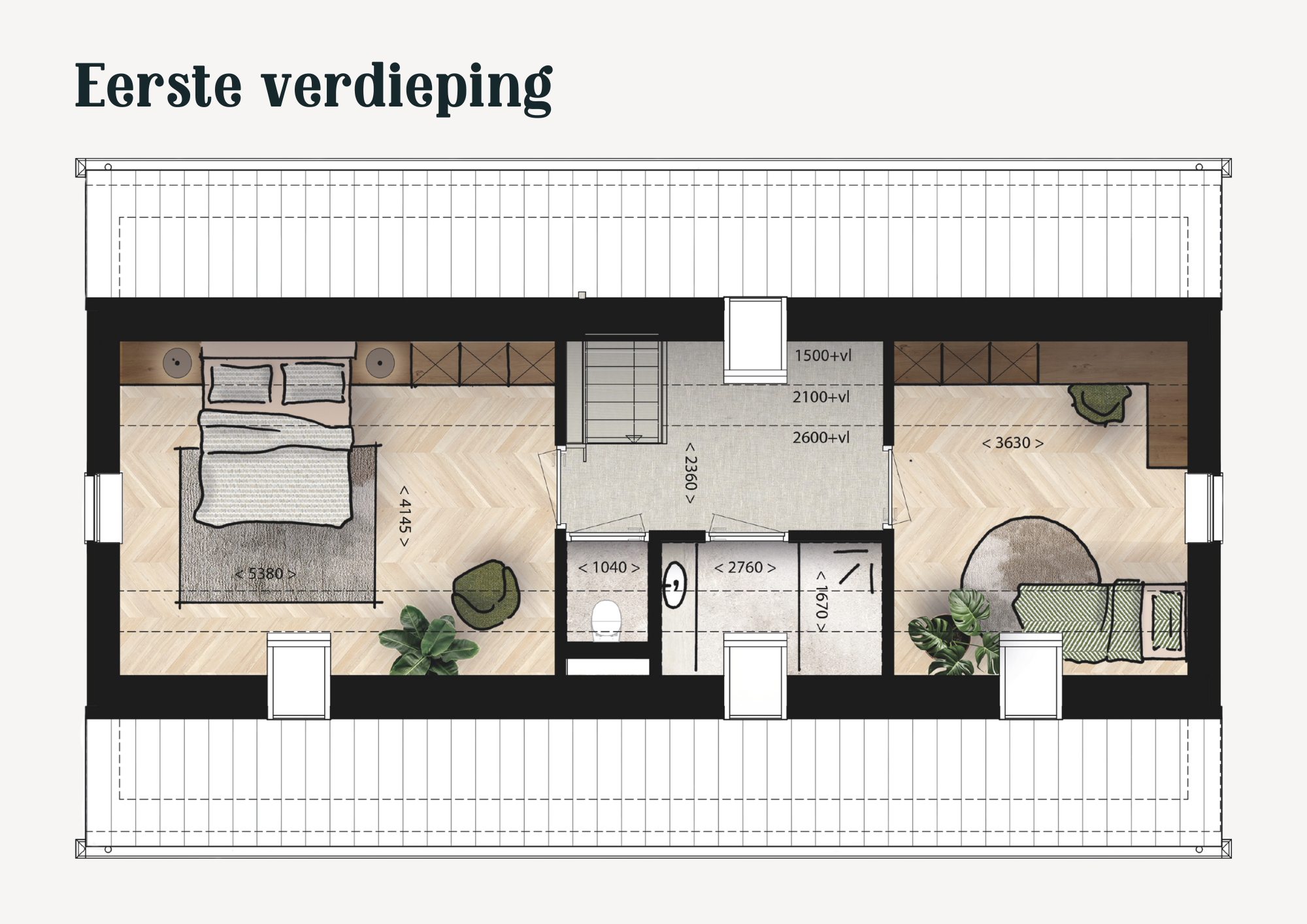 Voor modelwoning Kempenhof is bovendien een indelingsoptie beschikbaar waarmee u een vaste trap naar de zolder krijgt, in plaats van een vlizotrap.