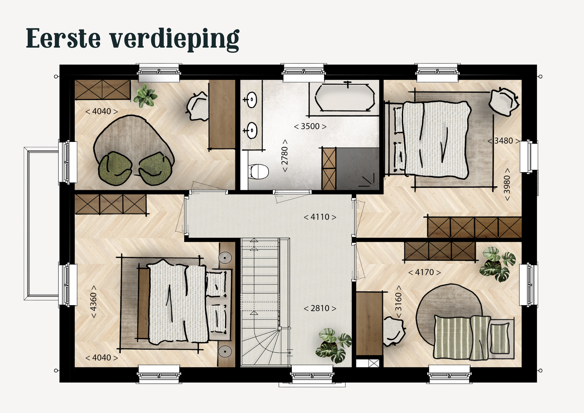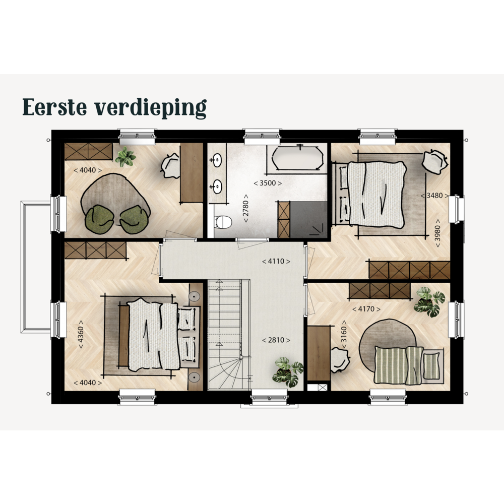 Onze modelwoningen zijn ontworpen met slim reken- en tekenwerk, waardoor het basisontwerp vastligt. Binnen deze heldere kaders zijn er wél volop mogelijkheden om uw woning een persoonlijke uitstraling te geven — van verschillende combinaties van gevelstenen en dakpannen tot het toevoegen van luiken, een erker of serre.