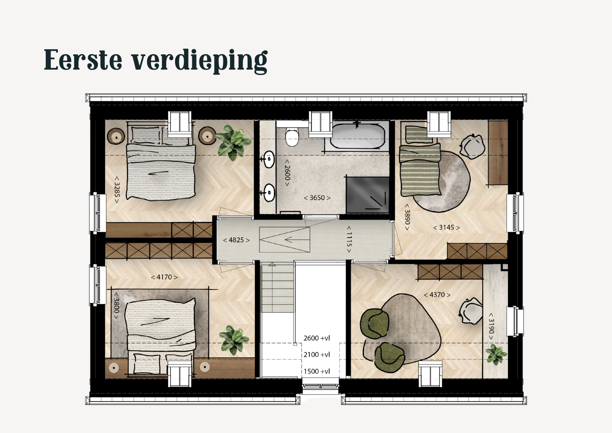 Onze modelwoningen zijn ontworpen met slim reken- en tekenwerk, waardoor het basisontwerp vastligt. Binnen deze heldere kaders zijn er wél volop mogelijkheden om uw woning een persoonlijke uitstraling te geven — van verschillende combinaties van gevelstenen en dakpannen tot het toevoegen van luiken, een erker of serre.